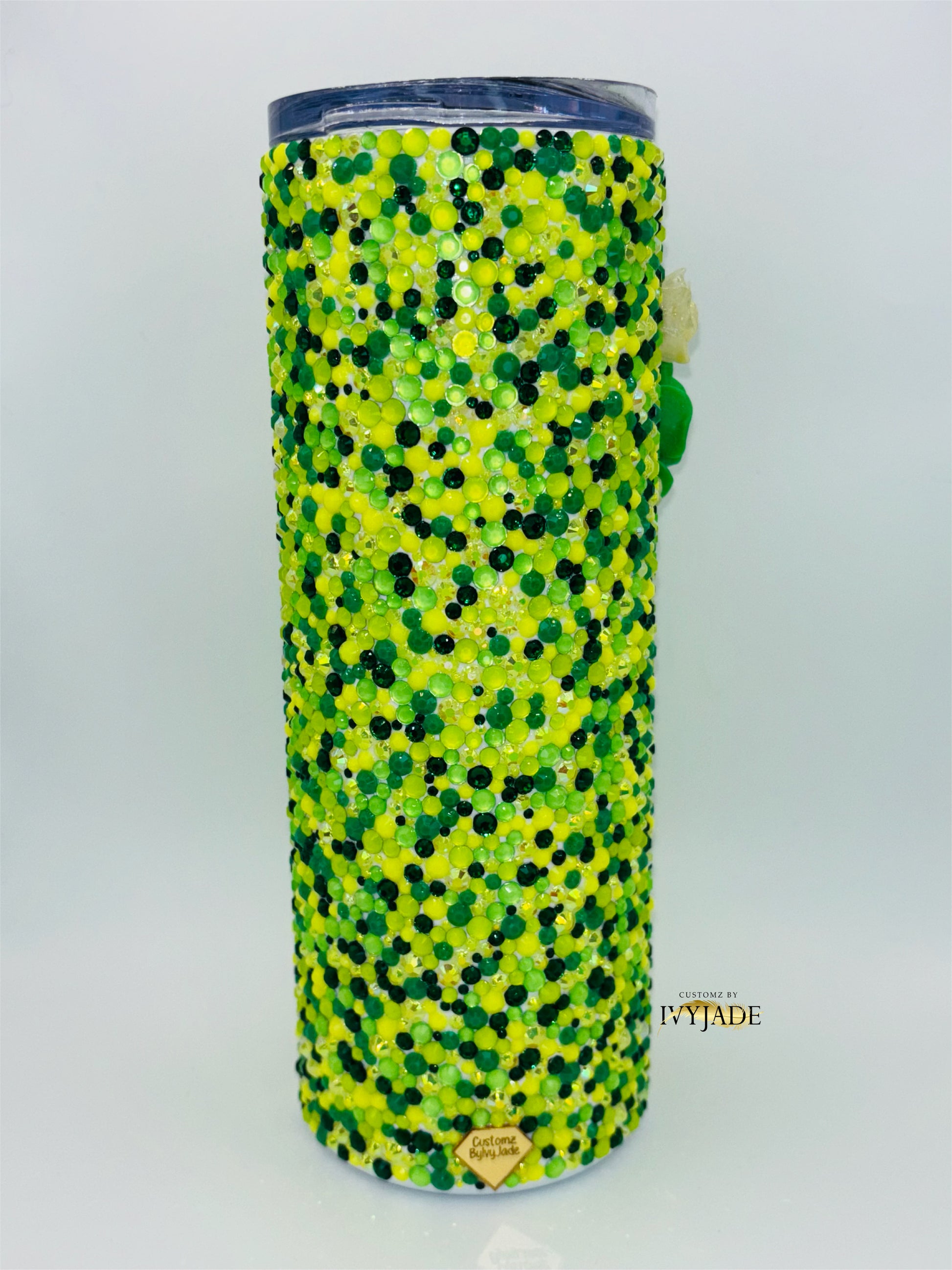 Stay hydrated in style with our Forest Green Rhinestone Tumbler! This 20oz stainless steel tumbler not only keeps your drinks cool, but also features beautiful green and yellow rose embellishments, as well as sparkling green and neon yellow rhinestones. Comes with a convenient stainless steel straw for on-the-go sipping. Stay glam and refreshed with every sip!