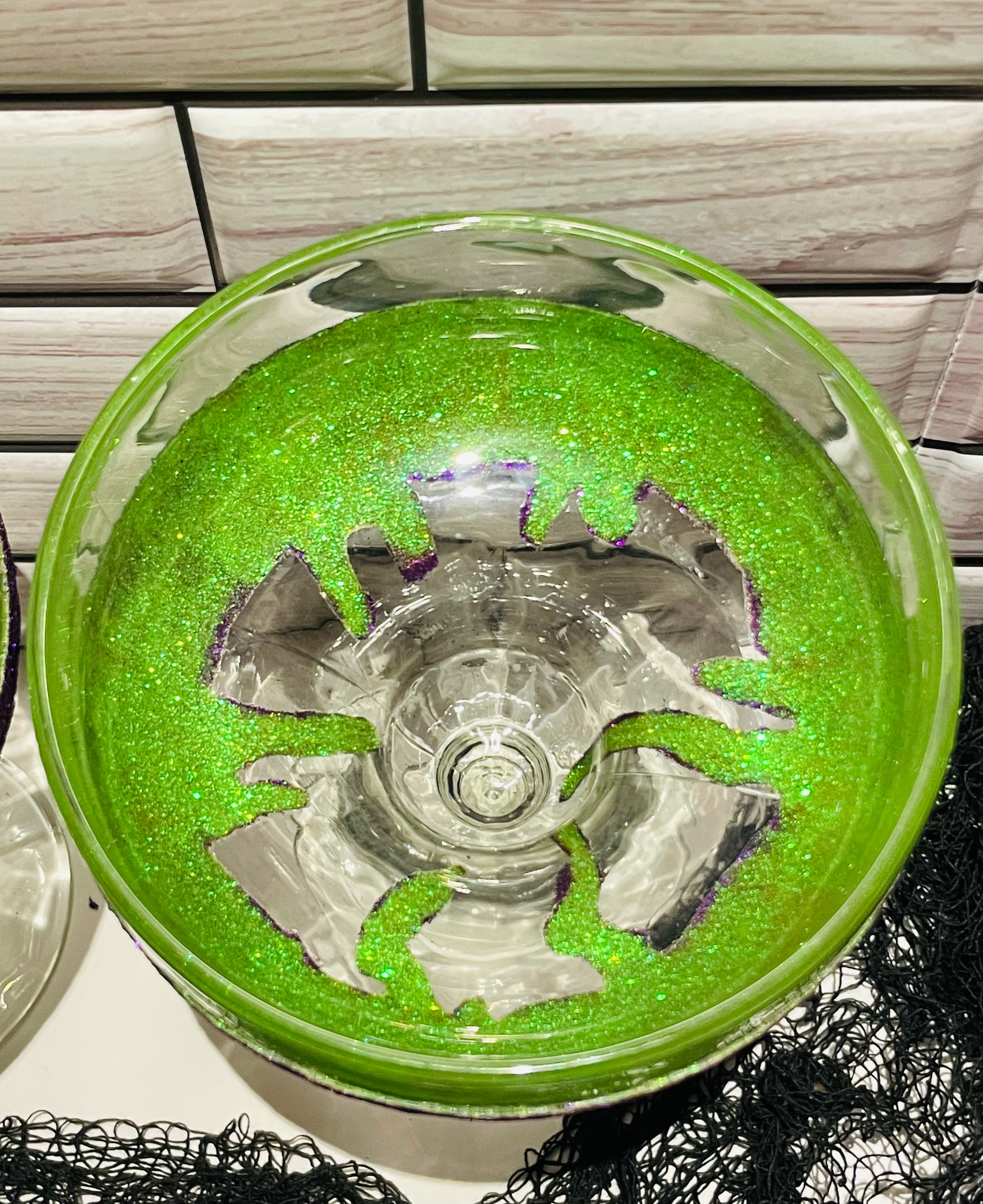 Purple and Green Glittered Margarita Glass Set